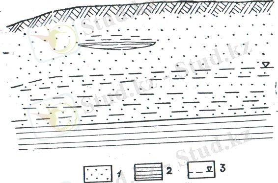 1 -құмдар; 2 - саз балшықтар; З -грунттық еспе судық деқгейі (ашық беті) .