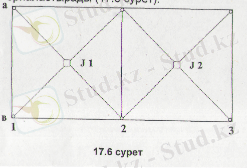 мұндағы а 1 және а 2 - іргелес станциялардан фигураның бірінші төбесіндегі есептеулер; в 1 және в 2 - іргелес станциялардан фигураның екінші төбесіндегі есептеулер.
