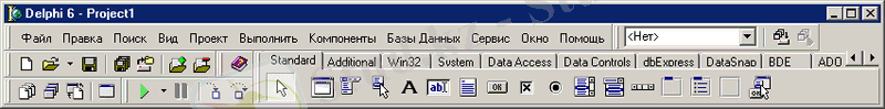 Delphi - дің негізгі терезесінің құрамына негізгі мәзір, аспаптар панелі және компоненттер палитрасы енгізілген (1. 2 - сурет) . Негізгі мәзір пункттеріне (ішкі мәзірлерге) Delphi - де жұмыс істеу командалары, аспаптар панеліне ішкі мәзірге енгізілген негізгі командаларды орындайтын түйиелер орналастырылған.