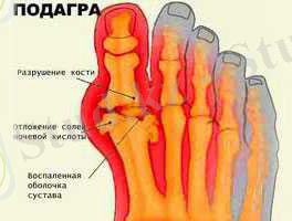 Подагра-(гр. Podos- аяқ және agra- аңшылық) буындарға несеп қышқылы натриінің түсуі. Тұздар қан мен несепке түсіп аяқ қол буындарын зақымдайды. Тіндерге кристалл немесе аморфты дене ретінде түскен тұздар тінді некрозға ұшыратады. Дәнекер тіндерінің арасында түйіндер пайда болады. Тұздар бүйректе жинағанда кальций каналдарын бекиді. Тұздар қол мен аяқтың, ұсақ буындардың синовийлік тініне, шеміршегіне, тізе, сирақ топай буындарына, сіңір мен құлақ қалқандарының шеміршегіне шөгеді.