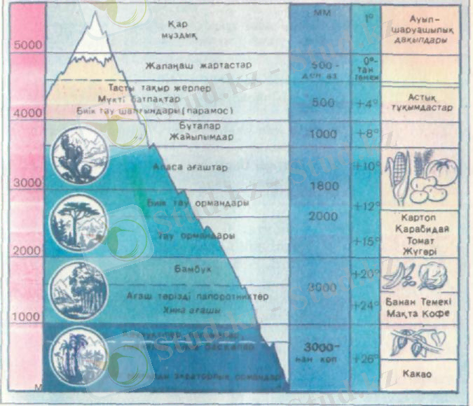 72-сурет. Андта экваторға жақын ендікте орналасқан биіктік белдеулер