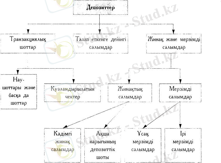 - талап етуіне деиінгі депозиттер; мерзімді депозиттер; жинак, салымдары; бағалы қағаздар.