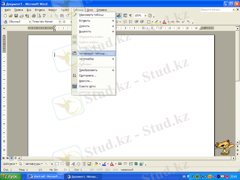 Лабораториялық жұмыс №5: Microsoft Word редакторында кестелермен жұмыс және негізгі пәрмендер