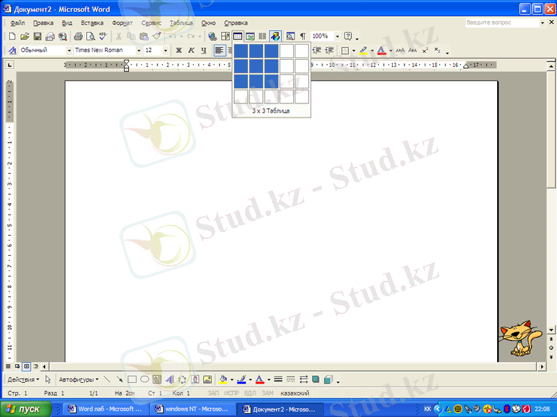 3-сурет. Кестені енгізу батырмасы кесте өлшемдерін қарапайым түрде белгілеп көрсетуге мүмкіндік береді.