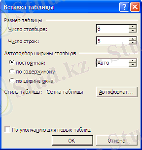 Қатарлар саны [Alt+И] - құрылатын кестедегі қатарлар саны осы пункті арқылы беріледі.
