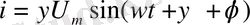 өрнегімен анықталады. Мұндағы (φ) -бұрышы осыдан бұрын айтылған жағдайдағы секілді wt-бұрыштары өсінен кернеуден бастап тоққа қарай бағытталып саналады және ол суйір немесе тік бұрыш болады, яғни