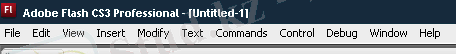 Программаның бас мәзірі тақырып жолының астында орналасқан, және ол Flash программасының баптаулары мен командаларына қатынауды жүзеге асырады.