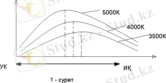 2) сәулелену спектіріндегі энергияның таралуы толқын ұзындығына тәуелді. Себебі толқын ұзындығы ұзарған сайын, оған сәйкес энергетикалық жарқыраудың спектірлік тығыздығы артып, максимум мәніне жеткеннен кейін қайта кеми бастайды;