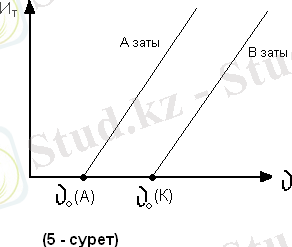 Шығу жұмысы (Aш) заттың тегіне тәуелді. Сондықтан әртүрлі заттар үшін фотоэффектінің шектік жиілігі (Uc) түрліше болады. Мысалы, 122-суреттегі шыны түтік ішінде орналасқан катод және анод электродтары әртүрлі материалдан жасалғандықтан олардың фотоэффект шектік жиіліктері әр түрлі болады. Оны тежеуішті кернеуді (Uт) мен фотоэлектрондар жиілігінің арасындағы тәуелділік аралықты көрсетуге ьолады. (5-сурет)