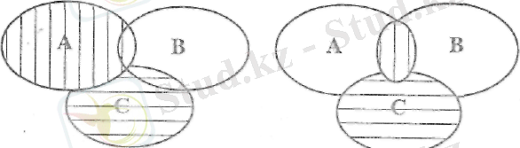 Сонда А\В∩С жиыны штрихталған бөлік болып есептеле-ді. Бұл жиынға В∩С жиыны кірмейтіндігі диаграммадаи көрініп тұр.