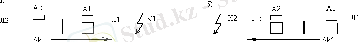 В. 13. сурет. Қорғаныстарды бағытталған етіп орындау қажеттілігін анықтайтын, екі қорек көзі бар торабтын сұлбасы.
