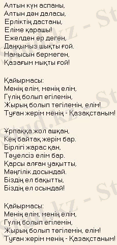 Қазақстан Республикасы Мемлекеттік әнұранының мәтіні