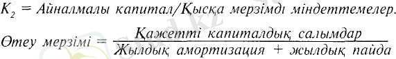 Айналмалы капитал мен қысқа мерзімді міндеттемелер сомасының сәйкестігі, қазіргі әрекет ететін капитал мен кәсіпкердің төлем қабілетін байланыстырады.