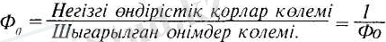 Қор қайтарымынын көрсеткіші негізп капиталдың бірлігіне қанша өнім шығарылады деген сұраққа жауап береді. Мысалы, егер өндірілген өнімнің көлемі 927 мың теңге, ал негізгі өндірістік корлардың уақыт мерзіміндегі орташа көлемі 600 мың теңге болса, онда қор қайтарымы мынандай болады: