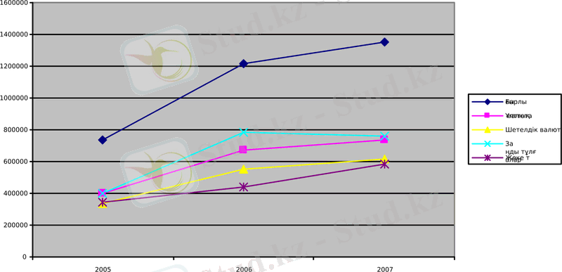 2007 жылдың қаңтарында заңды тұлғалардың депозиттері 763018 млн. теңгені құраса, жеке тұлғалардың депозиттері 586045 млн. теңгені құрады. Қазақстан Республикасының екінші деңгейлі банктеріндегі жеке тұлғалардың салымдарының жағдайына, статистикалық мәліметтерге сүйене отырып, талдау жасайтын болсақ, онда соңғы жылдары депозиттердің көлемінің қарқынды өскендігін байқауға болады (4-сурет) .