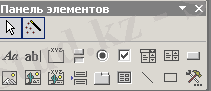 Форманы жасау кезінде қажетті іс әрекеттер жасау үшін Конструктордың аспаптар тақтасын қолданамыз. Оны іске қосу Түр - Аспаптар тақтасы командасы арқылы жүзеге асады. Онда Формалар конструкторы тізімін таңдап, Баптау батырмасын басу керек. Экранның сол жағында орналасқан Конструктордың аспаптар тақтасындағы негізгі батырмаларын атап шығайық: