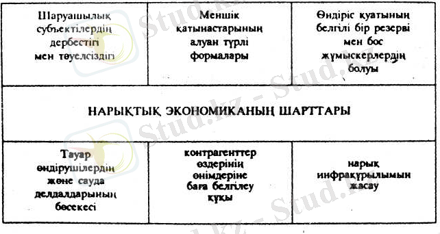 Нарықтың мәні, шарттары және түрлері; құрылымы мен инфрақұрымы; Қазақстанның нарықтық экономикаға өту ерекшеліктері