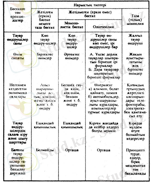 Нарық жағдайында бәсеке күресінің бірнеше түрлері болады: а) таза бәсеке; ә) монополиялық бесеке; б) олигополиялық бесеке; в) таза монополия (4-ші суретті қара) .