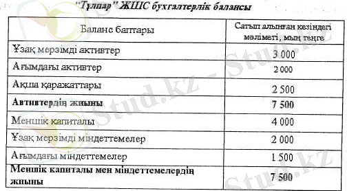 "Тұлпар" ЖШС-нің сараптаушылары "Виста" ЖШС-нің активтері мен міндеттемелерін тексеріп, оның нақты нарықтық бағасын шығарды. Ол мынадай болды: