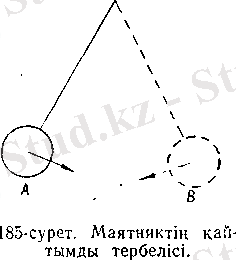 оралды. Үйкеліссіз тербеліп тұрған маят- никтің қозғалысын да осындай қайтымды процестің мысалы деп қарастыруға болады: маятник (185-сурет) өзінің жарты период ішінде А нүктесінен В нүктесіне