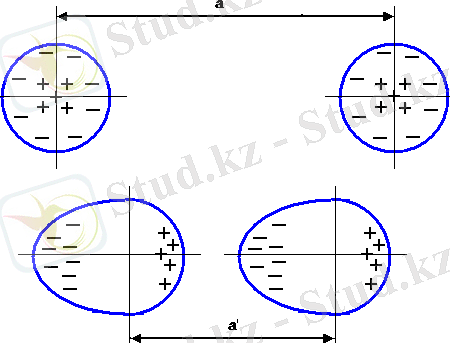 Инертті газдардың атомдары толық құрылған энергиялық дәрежені иемденеді, сондықтан атомдардың жақындауы кезінде электрондармен ауысу мүмкін емес. Атомдар арасындағы жақындау күштің пайда болуы жақындау кезінде атомдардың тез арада поляризациялануымен түсіндіріледі (сурет 2. 2) .
