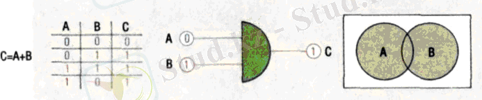 0+1=1 (бір пікір жалған, екіншісі - ақиқат, күрделі пікір ақиқат) ;