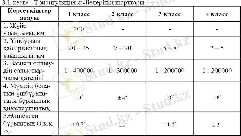 2. 1 Триангуляция туралы жалпы мағлұмат, I, II, III, IV класс триангуляциясының сипаттамасы