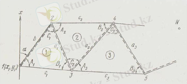 1. 1 -сурет. Триангуляция үшбұрыштар қатары