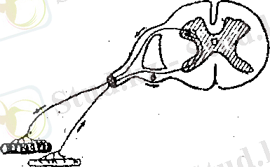 Жүйке жүйесінің жоғарыда айтылып өткен қызметтерінен басқа тағы да бір қызметі - тітіркендіруге жауап беру. Орталық жүйке жүйесі арқылы ағзаның тітіркендіруге жауап беруі рефлекс деп аталады. Жүйкені қозғанда жүріп өтетін жолы рефлекс доғасы деп аталады. Рефлекс доғасының ең қарапайым сызба нұсқасы қозуды жұлынға қайтаратын жауабы болып есептеледі (1сурет ) .