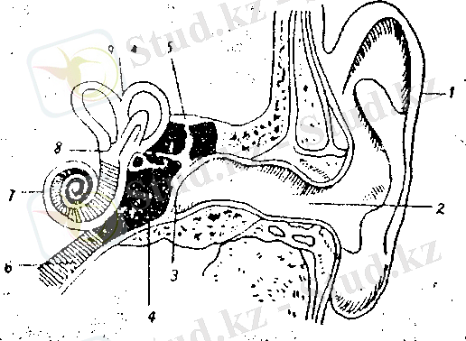 Адам есту мүшесі арқылы айналасындағы дыбыстарды. естіп, сонымен байланыста болады. Есту мүшесінен түскен ақпараттар ішкі мүшелердің жүмысына әсерін тигізіп, оларды реттеуге қатысады. Адамды қауіптен сақтауда ақпараттың маңызы үлкен. Есту мүшесін дыбыс қоздырады. Дыбыс тербелістері есту мүшелері арқылы жүйке қозу толқындарына айналып, айналадағы ортада болып жатқан жағдайларды хабарлайды. Есту талдауыштарының есту мүшесі үш бөліктен құрылады: сыртқы, ортаңғы және ішкі қүлақ (Сурет 3) .