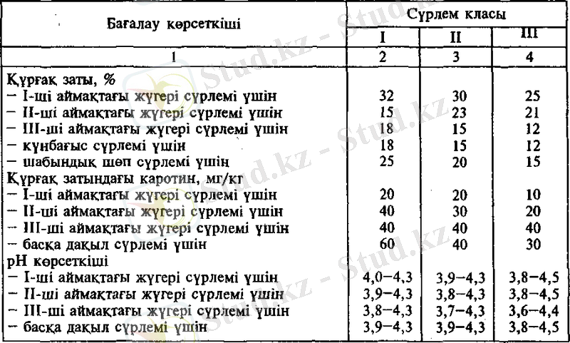 2. Сүрлемнің коректілігі мен сапасына қарай Мемлекетгік стандарт қоятын талаптар.