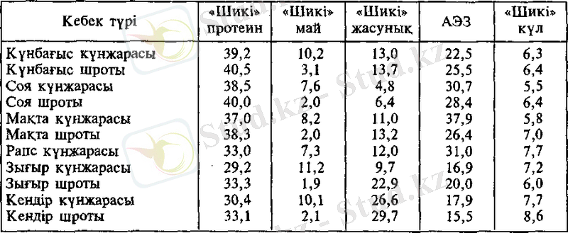 3-кесте. Майлы дақылдар күнжарасы мен шроттың құрамы,