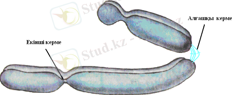 3. Жасушаның орталығы және әр түрлі маңызды органоидтар синтезделіп, олар бөліну әрекетіне қатысады. Осындай дайьшдыктар аяқталысымен жасуша боліне бастайды.
