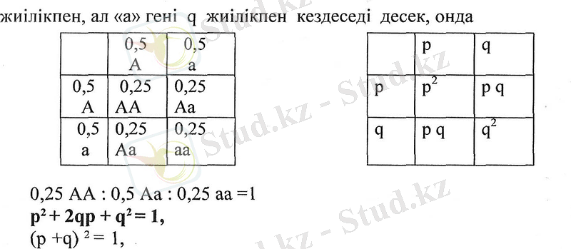 Модельдік популяциядағы теория бойынша күтуге болатын генотиптердің жиілік кестесі