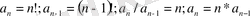 n! = (n-1) ! * n;