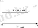 Тауардың қаншасы болмасын сол бір бағамен сатыла алады. Ақшалай орта түсімде өзгермейді және сол бағаға тең болады. Тіпті тауардың әрбір келесі бірлігі осының алдындағы бірліктің бағасымен сатылады. Осы жағдайда баға Р орта ақшалай түсімге AR тең және шекті ақшалай түсімге MR тең болады. Осыны 2. 3. сурет көрсетеді.