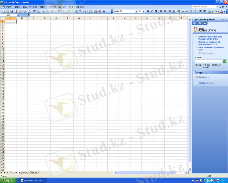 2 Exсel - ді іске қосқан кезде экранда оның негізгі терезесі көрінеді.