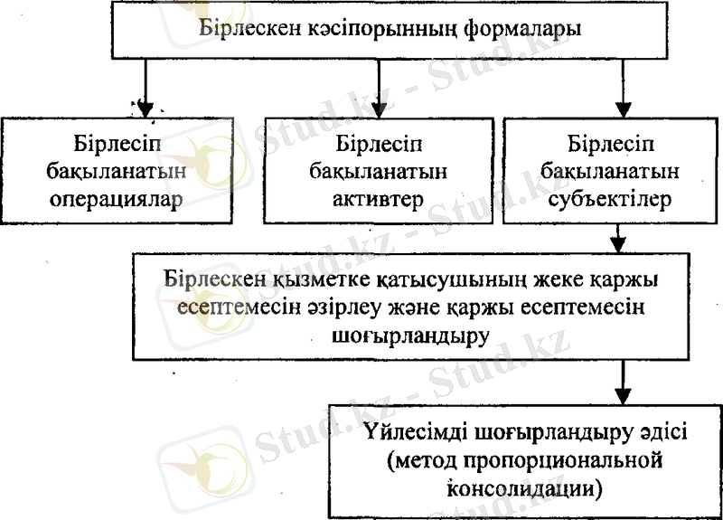 Субъектіні бірлесіп бақьшау формасындағы бірлескен қыз-метке қатысушының шоғырландырылған каржы есептемесін эзірлеуде стандартгармен үйлесімді шоғырландыру эдісі анық-талды.