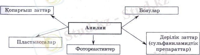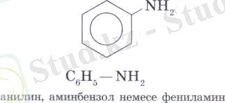 Анилин - ароматты амин. Аммиак молекуласындағы сутек атомының орнын - бензол сақинасы (фенил радикалы) басқан өнім: