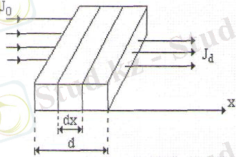Қалыңдығы d -ға тең заттан өткен жарықтың жұтылу заңдылығын табу үшін, (1) - өрнекті интегралдаса, онда жарықтың жұтылуын сипаттайтын Бугер - Ламберт заңы J d =J 0 e kd (2) алынады.