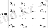 \[\sum_{j=1}^{n}a_{1j}x_{j}=b_{1},i=1,2,...,m;\](1. 1)ол n белгісізі бар m теңдеуден тұрады: оның коэффиценттері жүйенің матрицасын құрайды: