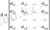 матрица деп аталады. Ол мұнда n жатық жол мен m тік жолдан тұрады. Матрицаны құрайтын сандар оның элементтері деп аталады. Оның бірінші индексі жатық жол, ал екіншісі тік жол нөмірін көрсетеді.