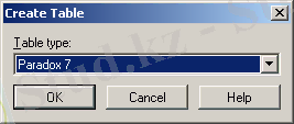 - терезеден File - New - Table (Файл-Жаңа-Кесте) командасын беру. Create Table (Кесте құру) сұхбаттық терезесі шығады. Онда ашылатын тізімнен қажетті кесте форматын таңдау (Paradox не dBase) . Алғашқы рет Paradox7 форматы іске қосылып, терезе өрісінде осы атау көрінеді (1. 7-сурет) .