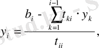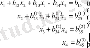 теңдеулерін жинақтап жазсақ, белгісіздерді анықтауға мүмкіндік беретін үшбұрышты жүйе аламыз: