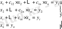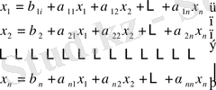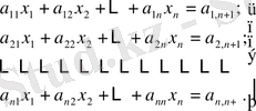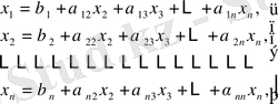 жүйенің бос мүшелерін жүйенің сол жағына шығарамыз да бірінші теңдеуді -а 11 ге, екінші теңдеуді -а 22 ге және т. с. с. бөлеміз, нәтижесінде.