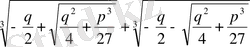 х 3 + рх + q =0 теңдеуді Кардано формуласы бойынша есептегенде.