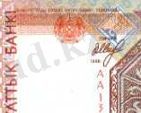 Сериялық нөмір . Магниттік сериялық нөмір құрамында магнит бар қара бояумен басылған екі әріпті сериядан және жеті цифрлы нөмірден тұрады. Фосфорлы сериялық нөмір құрамында фосфор бар қара бояумен басылған екі әріпті сериядан және жеті цифрлы нөмірден тұрады.