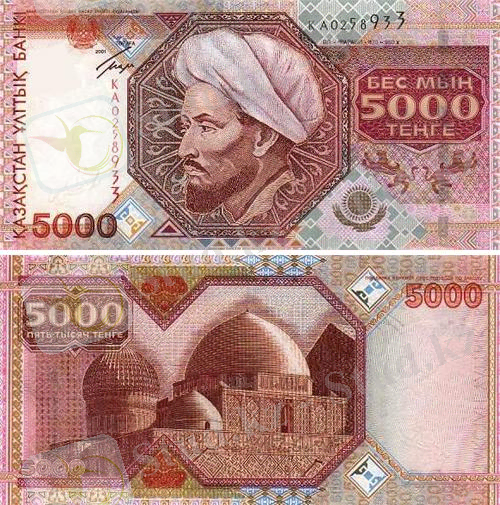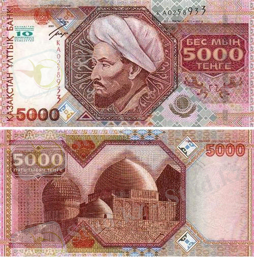- 2001 жылғы үлгідегі 5000 теңгелік банкноттар ( дизайны ішінара өзгертілген ) .
