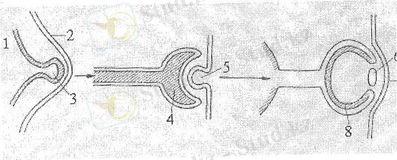 5-көз бұршағының бастамасы; 6-көз бұршағы;