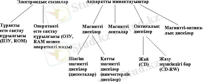 ДК есте сақтау құрылғысының классификациясы келтірілген.